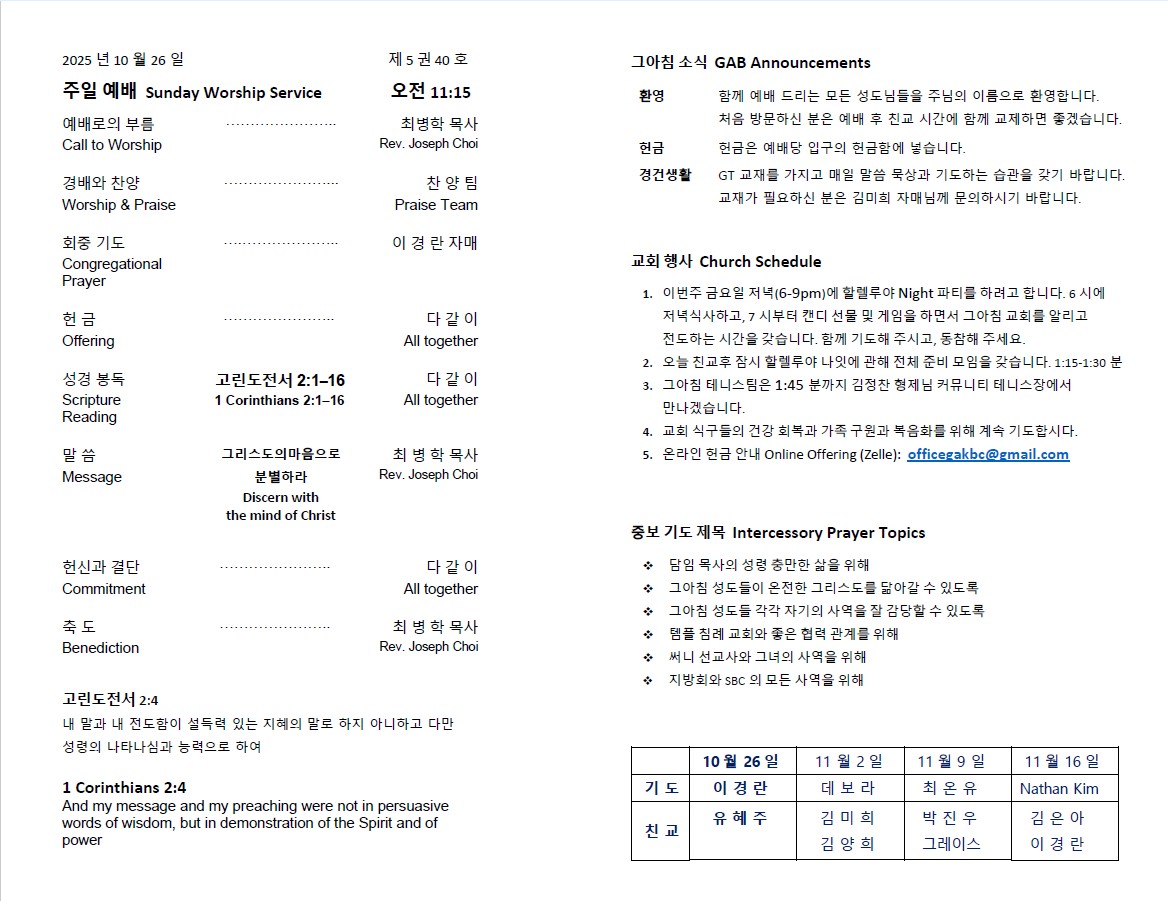 10월 26일 교회소식