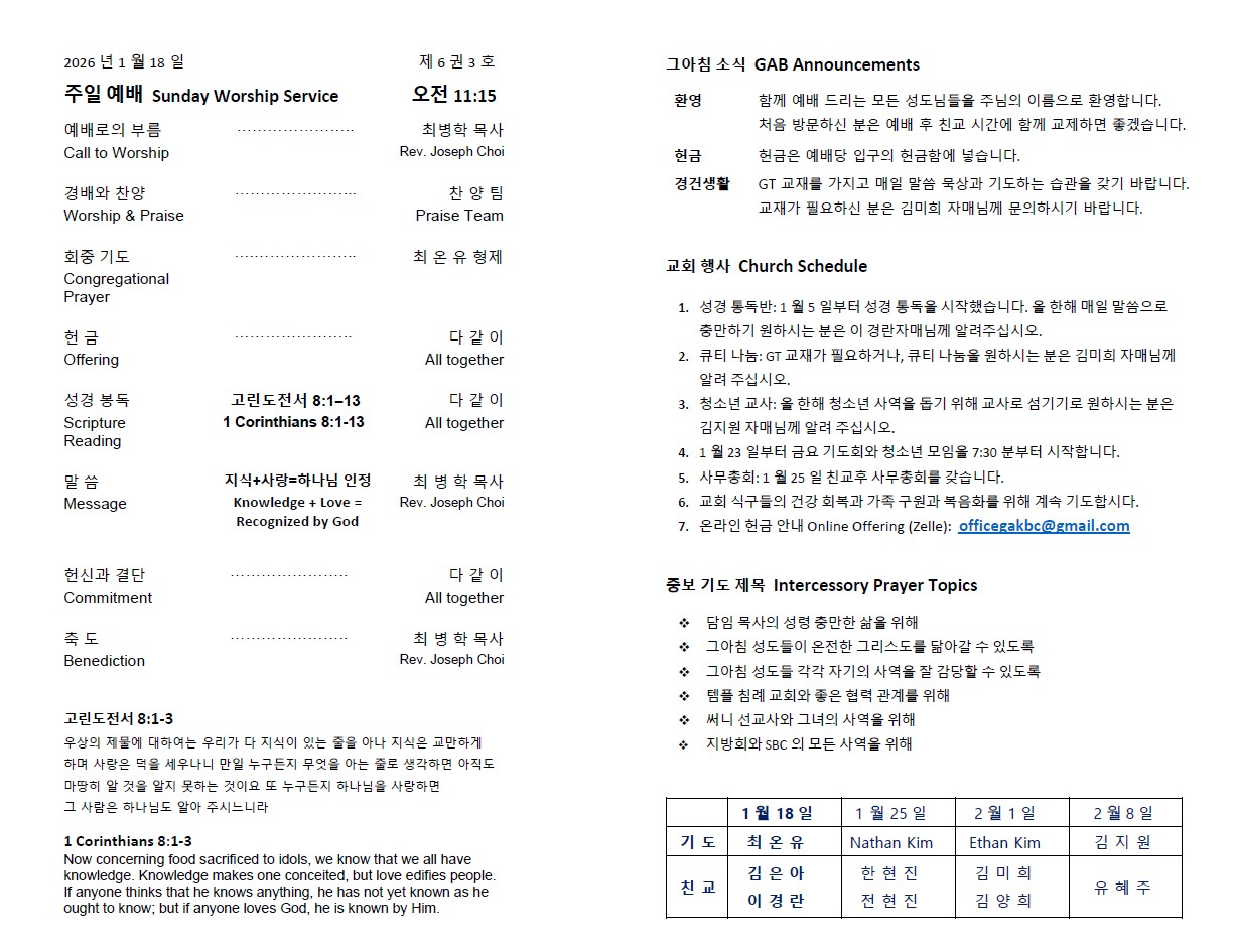 교회소식 01-18